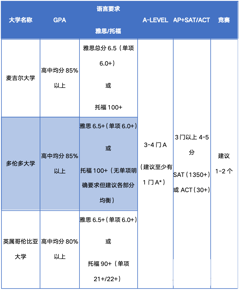 国际课程申请加拿大TOP3大学要求参考